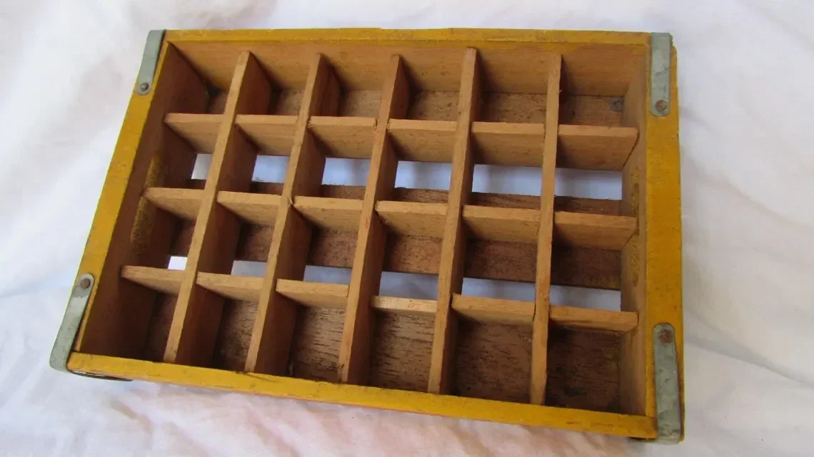 Vintage Coca Cola Kiste Gelb mit Unterteilungen (Sammlerstück)